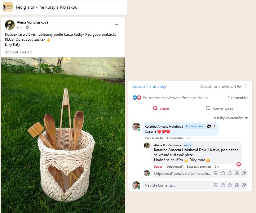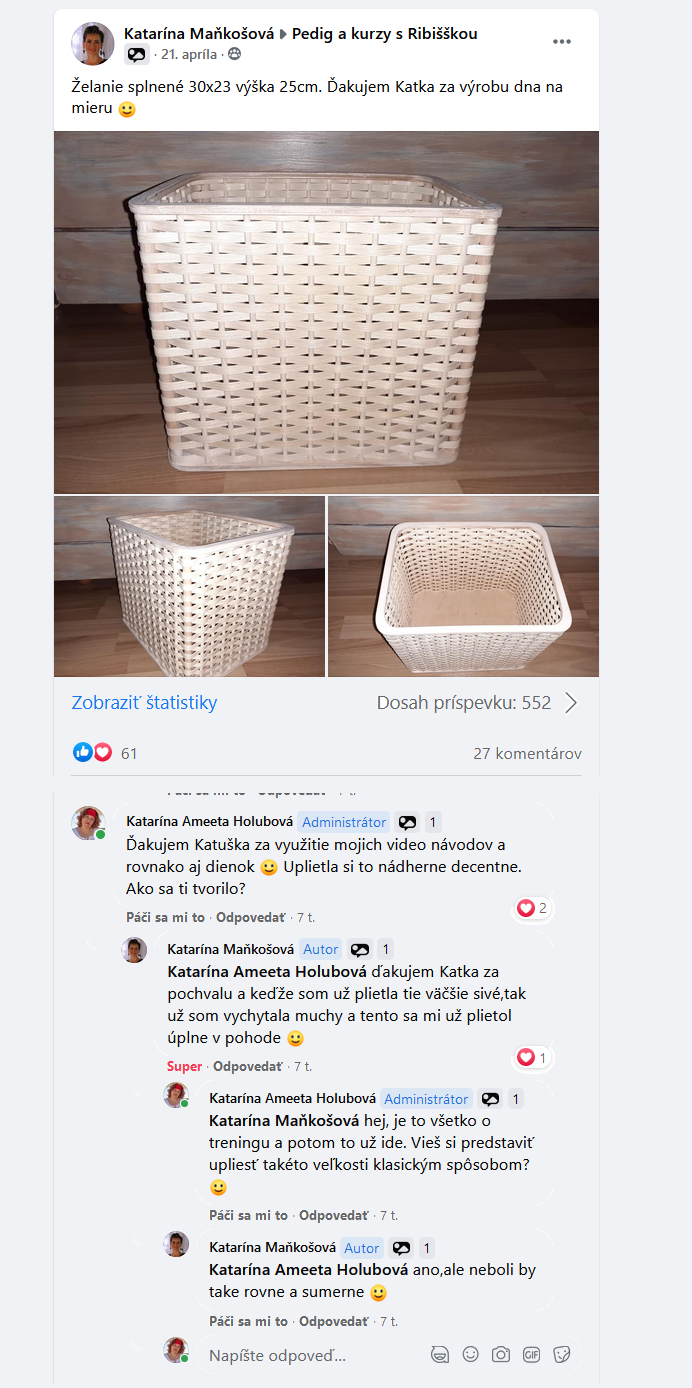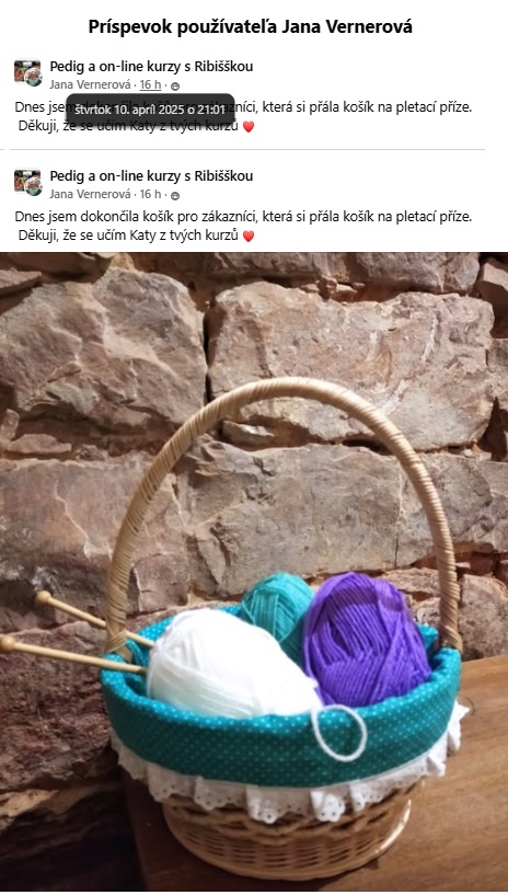 Vydaj sa spolu so mnou na úžasnú cestu pletenia košíkov a ďalších krásnych vecí z pedigu ľahko a s radosťou. Relaxuj užitkovým tvorením. Využi to naplno, nikde inde nenájdeš lepší kurz, ako sú kurzy od Ribiššky. Dopletenia.