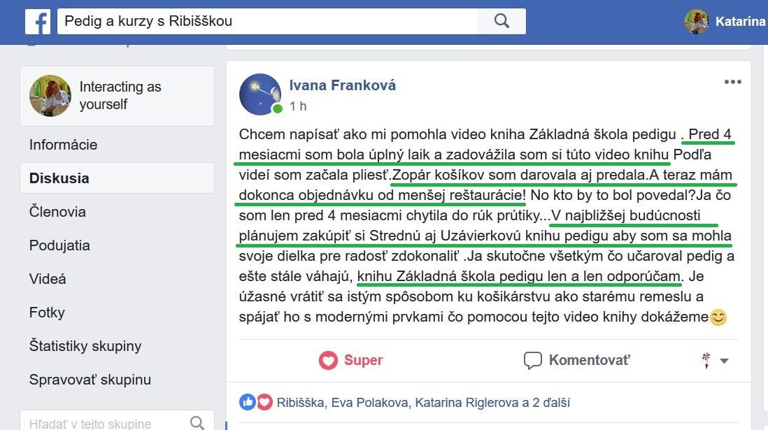 Vďaka video knihe som uplietla rýchlejšie veľký košík a viac som s ním zarobila. Investícia do video knihy sa mi predajom jedného košíka okamžite vrátila. Sú v nej jasné a presné video návody. To, čo je v bonusoch som sa nikde inde ešte nedozvedela. Sú výborné, vďaka nim som sa v pletení zdokonalila